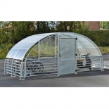 Abri 12 vélos et/ou motos fermé par une porte grande largeur à ouverture par digicode. Structure tubulaire en acier galvanisé à chaud de Ø 30 mm et 25 mm pour le barreaudage. Joue de fond en plexiglas et toit en polycarbonate alvéolaire. L'abri suivant permet d'ajouter 6 places de vélos supplémentaires. Dimensions (H x L x P) (abri initial/abri suivant) : 2370 x 5840 x 2240/1050 mm Livré démonté, visserie de fixation non fournie.