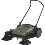 Utilisation en extérieur et en intérieur. Filtre à poussières fines. Entraînement du balayage manuel. Balai principal réglable. Timon rabattable. Rendement surfacique : 1 balai 2800 m²/h - 2 balais 3680 m²/h Largeur de travail : 480 mm Cuve à déchets : 20 l Dimensions : 1300 x 765 x 1035 mm