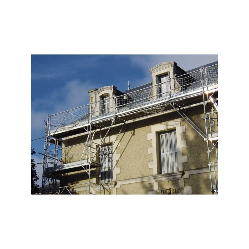 Pour les métiers du charpentier et du couvreur. En acier galvanisé. Système d'échafaudage tubulaire évolutif constitué de cadres en H symétriques et réversibles. Léger et facile à mettre en place. Le modèle présenté est un modèle couvreur avec une plateforme de travail longueur 15 m à 7 m de hauteur. Montage et accès sécurisés. Norme : NF - EN 12810 - EN 12811 Pour d'autres modèles, nous consulter.