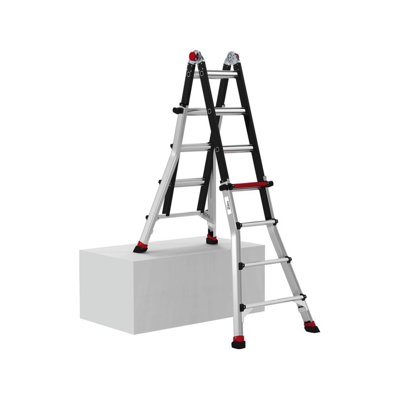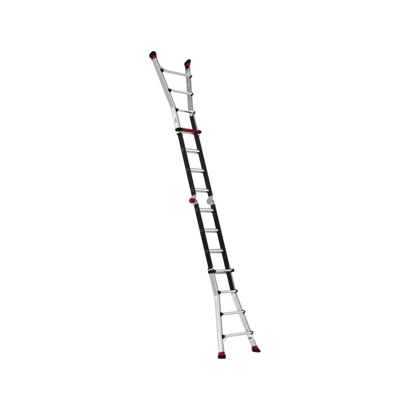 Utilisation sur sol plat ou en décalage de niveau, usage intensif. En aluminium. Utilisable déployée droite ou en position double plan de montée. Échelons déportés. Plan télescopique coulissant pour une utilisation en décalage de niveau. Charge maxi : 150 kg Norme : EN 131-4