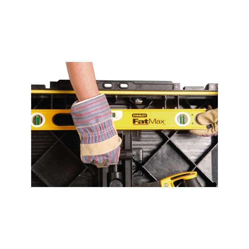En polypropylène. Attaches métalliques anticorrosion et serrure à clés. Roues grand diamètre tout terrain, poignée télescopique bi-matière. Rainure en V pour des découpes d'appoint. Nombreux rangements verticaux et plateau porte-outils intégré. Etanche à l'eau et à la poussière (IP54). Volume utile : 113 l Dimensions : 910 x 520 x 430 mm. Livré sans outils.