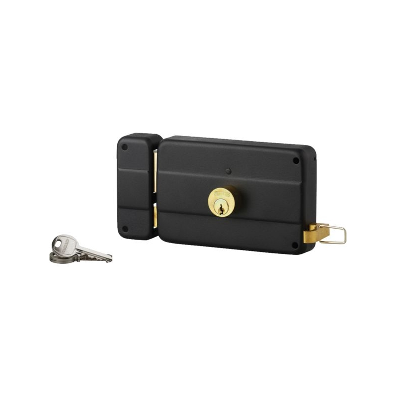 Acier embouti. Pêne et ½ tour en laiton. Mécanisme à 3 tours. Rappel du ½ tour par la clé. Double cylindre (diamètre 25 mm) laiton 5 goupilles. Entrée de cylindre et de fouillot en acier. Livré avec gâche et 3 clés laiton nickelé. Dimensions coffre : 140 x 90 mm Longueur : 45 mm Entraxe : 120 mm Fouillot carré : 6 mm Conditionnement : boite