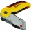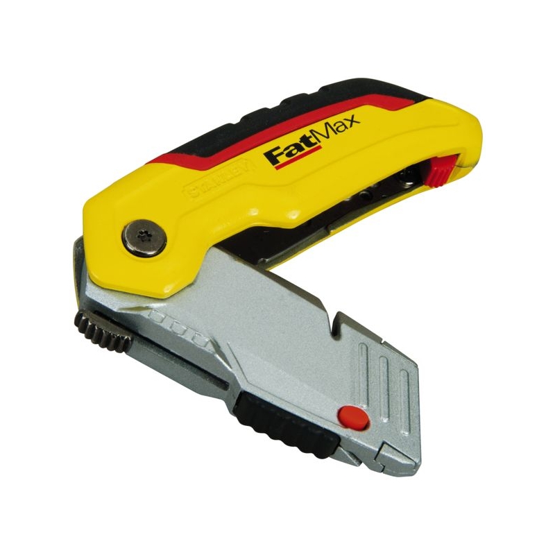 Couteau pliable et compact à ouverture d'une seule main. Changement facile et rapide de la lame. Lame rétractable. Poignée bi-matière. Réservoir de lames intégré. Livré avec 3 lames trapèze.