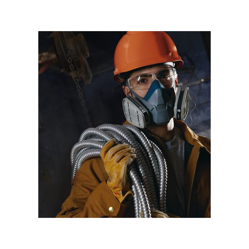En silicone. Équipé d'une soupape expiratoire centrale. Confortable, léger, entretien facile. À équiper de filtres latéraux fixés par système 'Click' à baïonnette. Harnais ajustable. Mise en place et retrait aisé lors de l'entrée ou de la sortie d'une zone contaminée, grâce au système Quick Latch. Polyvalence d'emploi : filtres antigaz et/ou à particules Taille : M Norme : CE Cat III - EN 140