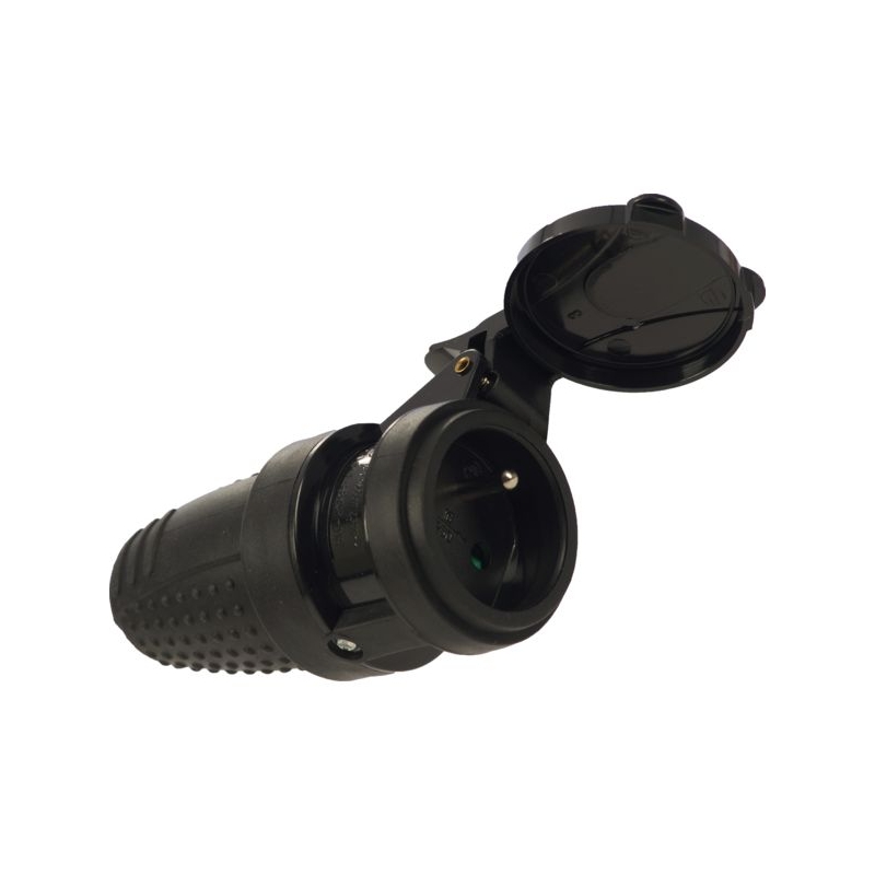 Sortie droite 2P+T - 16 A - 250 V. A clapet. Pour câble H07RNF 3G1,5 mm² et 3G2,5 mm². Indice de protection : IP 44 Norme : NFC 61314