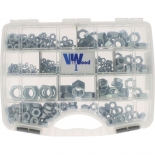 Acier zingué blanc. Composition du coffret: · Ø 4 mm (100 pièces) · Ø 5 mm (100 pièces) · Ø 6 mm (100 pièces) · Ø 8 mm (90 pièces) · Ø 10 mm (90 pièces) · Ø 12 mm (15 pièces) · Ø 14 mm (12 pièces) · Ø 16 mm (15 pièces) · Ø 18 mm (5 pièces) · Ø 20 mm (5 pièces)