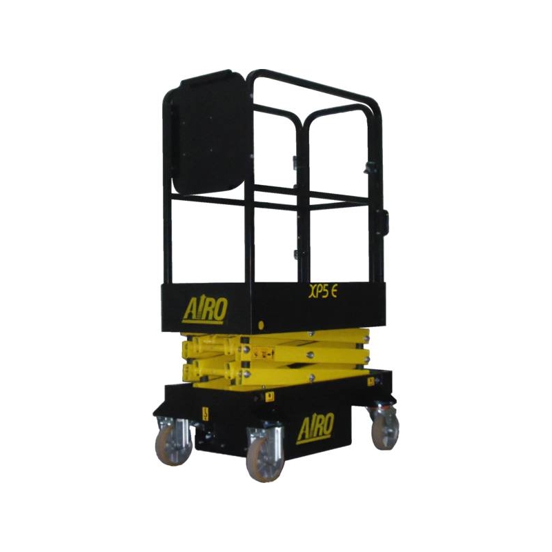 A déplacement manuel. Idéale pour les travaux de nettoyage, de maintenance... Plinthe intégrée dans la porte, pour faciliter entrée et sortie. Porte à fermeture automatique. Montée totale en 12 secondes. Capacité de charge : 250 kg Hauteur de levage : 5,34 m Poids : 430 kg