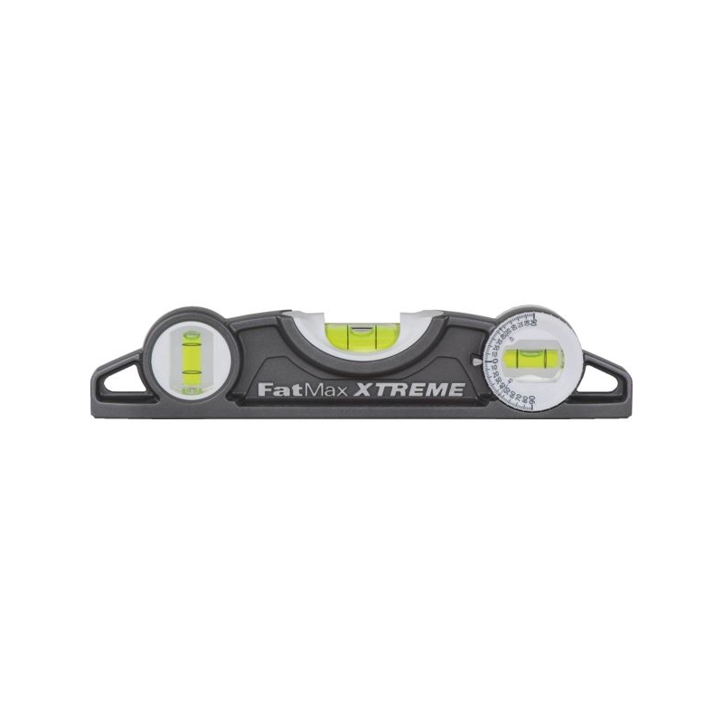 Corps aluminium renforcé. Semelle aimantée et rainurée en v pour le contrôle de surfaces cylindriques. 3 fioles, 1 horizontale grossissante, 1 verticale, 1 de déclivité 180°. Longueur : 25 cm Précision : +/- 0,5 mm/m