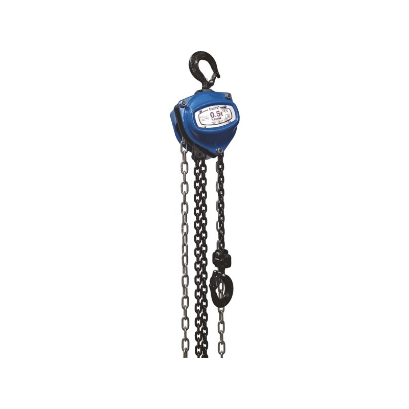 Permet le levage vertical de charges. Crochets en acier forgé, tournants à 360° avec linguets de sécurité. Chaîne de levage finition phosphatée noir et chaîne de manuvre zinguée. Conformité à la Directive Machine 2006/42/CE 90% recyclé, 90% recyclable