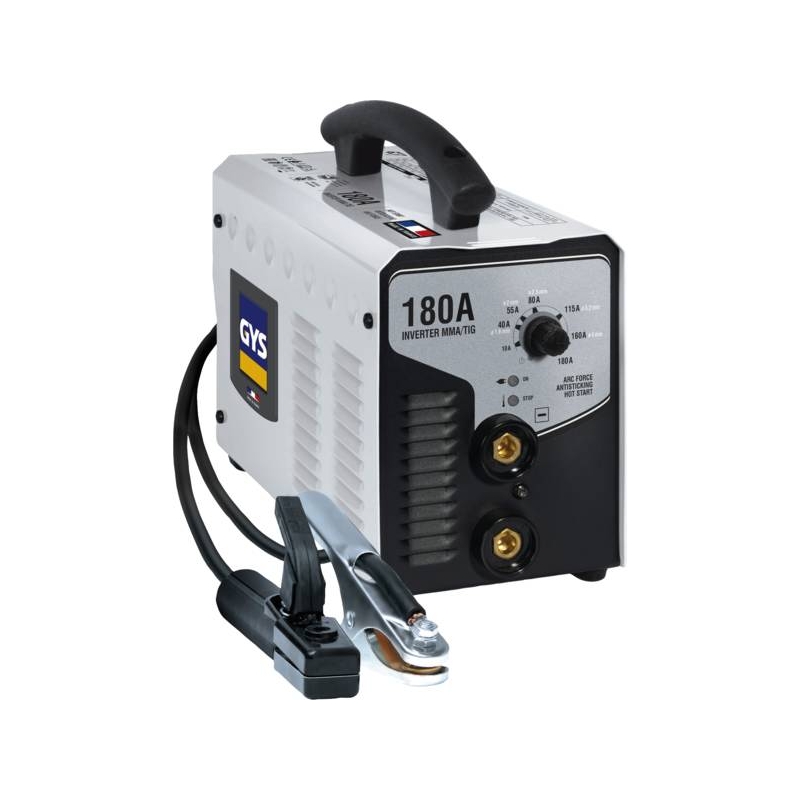 Idéal pour la maintenance industrielle, à la fois sur les chantiers et en atelier. Pour électrodes acier, inox, basiques, rutiles, fonte Ø 1,6 à 4 (Ø 3,2 en continu) 10 à 180 A maxi. Aides au soudage intégrées (Hot start, Arc Force, Antisticking). Protégé contre les surtensions jusqu'à 400 V (Protect 400). Alimentation : 230 V monophasée Consommation effective : 16 A Tension à vide : 72 V Courant de soudage : DC 10 - 180 A Facteur de marche à 40°C : 120 A à 60% Poids : 5 kg Dimensions : 140 x 180 x 270 mm Livré en valise avec câble de masse et porte-électrode.