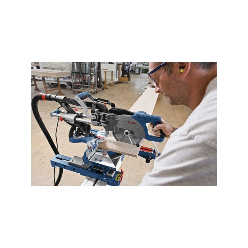 Travail plus propre et zone de travail dégagée par l'aspiration des poussières des 2 côtés. Tables latérales extensibles. Puissance : 1600 W Vitesse : 5500 tr/mn Ø lame : 216 mm x 30 mm Capacité de coupe - lame 0°/onglet 0° : hauteur 70 mm x largeur 312 mm - lame 45°/onglet 0° : hauteur 45 mm x largeur 312 mm - lame 0°/onglet 45° : hauteur 70 mm x largeur 214 mm - lame 45°/onglet 45° : hauteur 45 mm x largeur 214 mm Poids : 16,300 kg Livrée avec lame de scie Ø 216 mm, alésage 30 mm, 48 dents et pince de serrage.