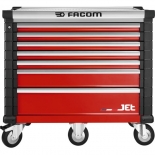 Fermeture centralisée par serrure à clé. Plan de travail plaque d'aluminium avec embouts polypropylène antichoc. 2 poignées latérales avec revêtement bi matière soft. 4 roues de 125 mm dont 2 pivotantes et une avec frein. Roues résistantes aux hydrocarbures. 30 modules répartis dans les 7 tiroirs de 60 et 130 mm : - 5 tiroirs hauteur 60 mm (25 modules) - 1 tiroir hauteur 130 mm (5 modules) - 1 tiroir hauteur 200 mm Charge maxi. par tiroirs : 265 kg Charge maxi. statique sur plan de travail : 1100 kg Dimensions utiles du plan de travail : 987 x 461 mm Dimensions : L. 1154 x P. 546 x H. 1000 mm Livrées avec 8 cloisons pour tiroirs de 60 mm et 8 cloisons pour tiroir de 130 mm. Existe en coloris noir réf. JET.7NM5A