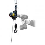 Mini treuil de levage et de traction/halage occasionnel, actionné par visseuse ou perceuse électrique. Permet de travailler dans toutes les positions, système automatique de maintien de la charge. Monté avec 12 m de câble acier galvanisé type aviation Ø 4,76 mm. Longueur de câble illimitée en traction/halage et limitée à 50 m en levage. Force : 300 kg en levage/450 à 1500 kg en halage Poids : 7,500 kg Livré sans perceuse.