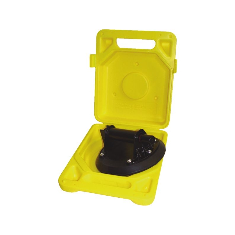 Manipulateur à pompe. Semelle en caoutchouc Ø 200 mm, 1 coupe. La pompe à vide, située dans la poignée, est actionnée par pressions successives sur le piston. Charge : 50 kg à la verticale